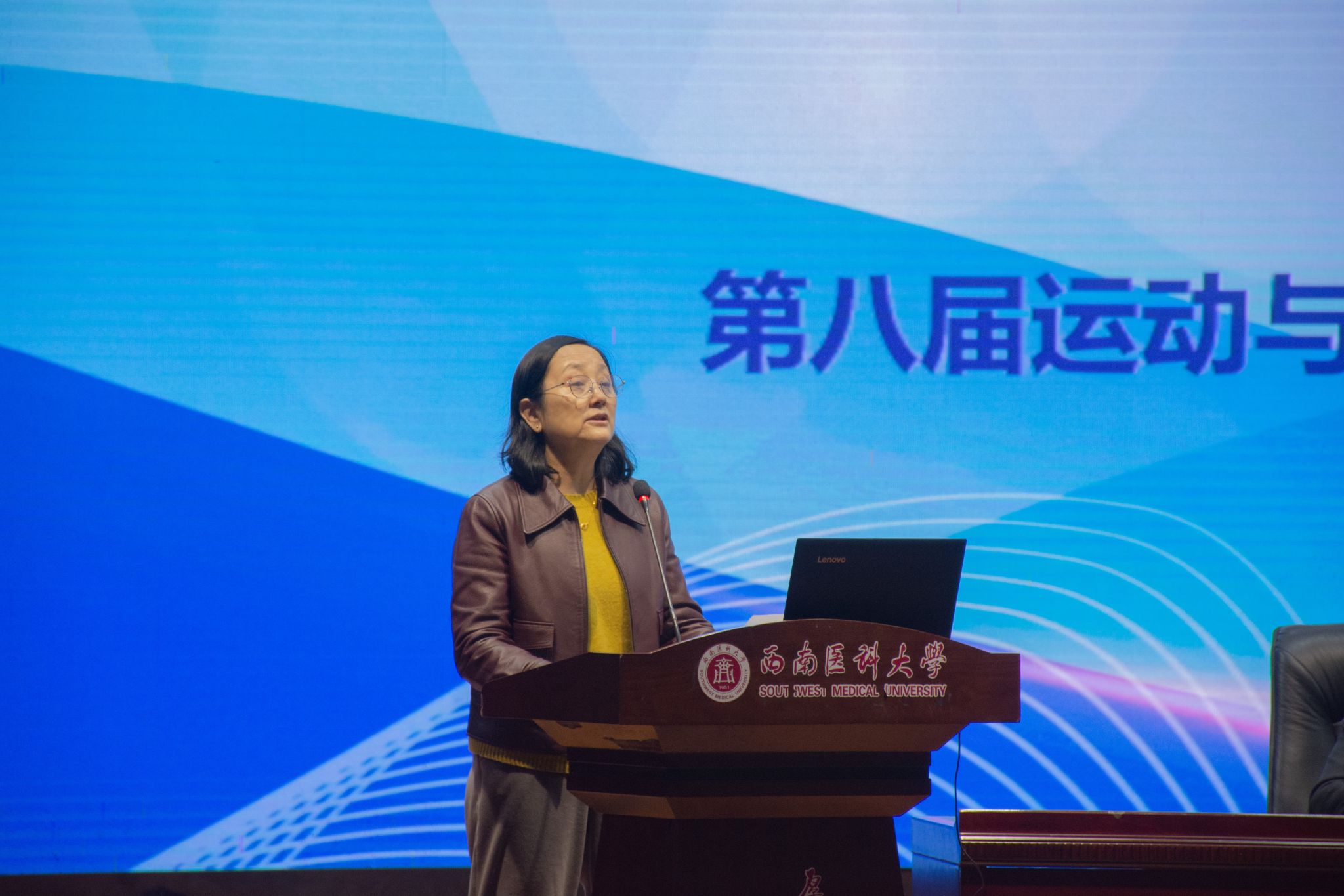 祝莉教授致辞,代表学会对论坛的召开表示热烈祝贺,她指出,西南医科大学连续多年举办该论坛并设立研究生科学论文报告会,并在“体医融合”道路上迈出了坚实的步伐,体现了学校的前瞻视野和对体育科学与全民健康的高度重视。她指出,当前正值“健康中国”战略深入实施的关键时期,体育在健康促进和疾病预防方面的价值日益凸显,中国体育科学学会将持续支持高校在此领域的探索,并大力培育青年科技人才。希望各位专家学者、老师同学珍惜此次学术交流机会,深入研讨,相互启发,共同为推动我国体育与健康事业发展贡献智慧力量。