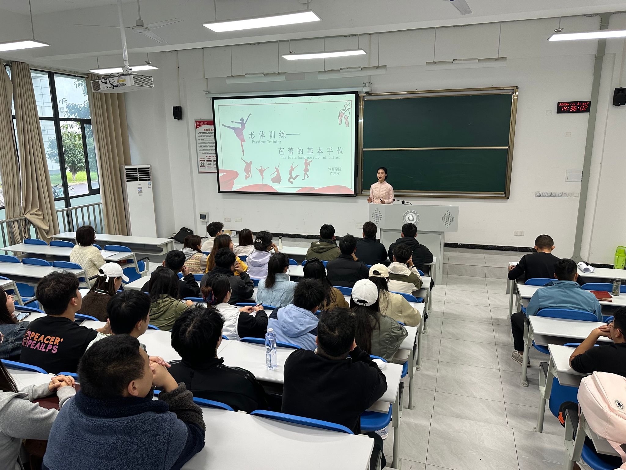 袁艺文老师以芭蕾的基本手位为题进行讲课示范,通过生动演示和细致讲解,展现了课堂教学的规范性与感染力,并分享了多年积累的讲课经验。辜山老师围绕双败淘汰赛制开展说课示范,系统解析说课逻辑与设计要点,结合实例强调了教学内容的组织与表达技巧。互动环节中,两位老师针对学生提问逐一进行了解答,现场气氛热烈。