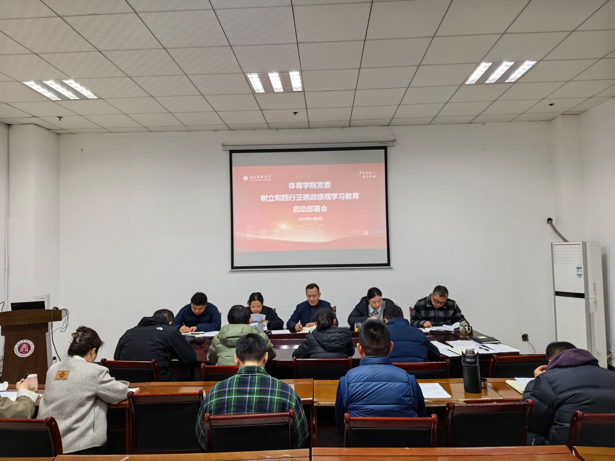 3月9日,体育学院党委在学院会议室召开树立和践行正确政绩观学习教育启动部署会,体育学院党委委员、党支部书记、各科室负责人、系部(中心)主任参加会议。会议由党委书记邹小萍主持。