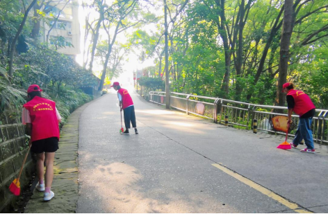 志愿者们利用周末时间,以宝山路主干线为核心,对校园进行了常态化清洁,包括打扫人行道、清理绿化带卫生死角、清洁校园牛皮癣等。志愿者们手拿清洁工具,分别在各条主干道上仔细清扫枯叶,维护道路卫生,豆大的汗水挂在每一位志愿者眉上、脸上,全然不觉。