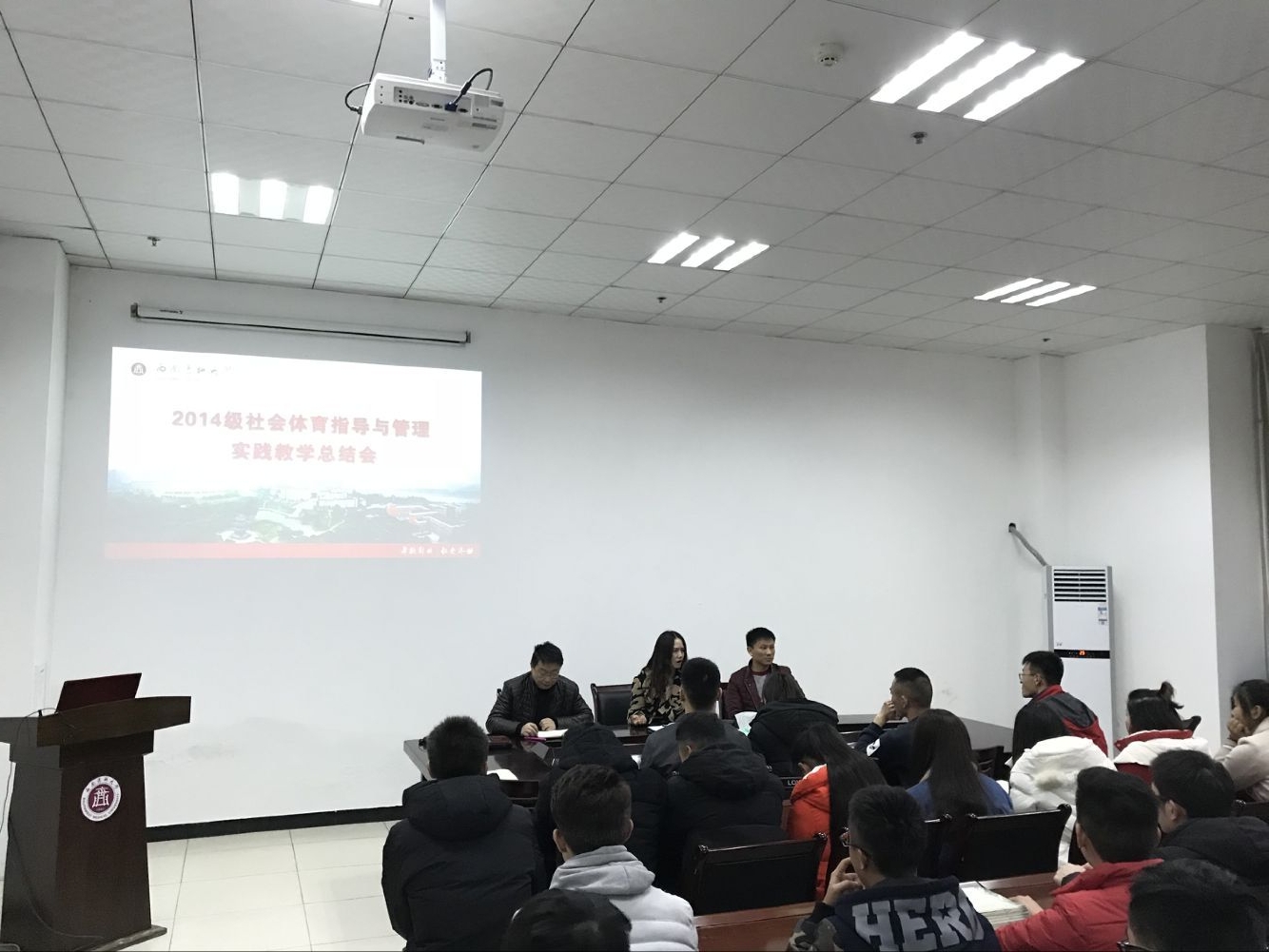 2018年1月4日,体育学院在学院会议室召开了2014级社会体育指导与管理专业实习总结大会。体育学院副院长王晓芳、学生科科长葛李、辅导员刘权及2014级全体学生参加了会议。会议由葛李主持。