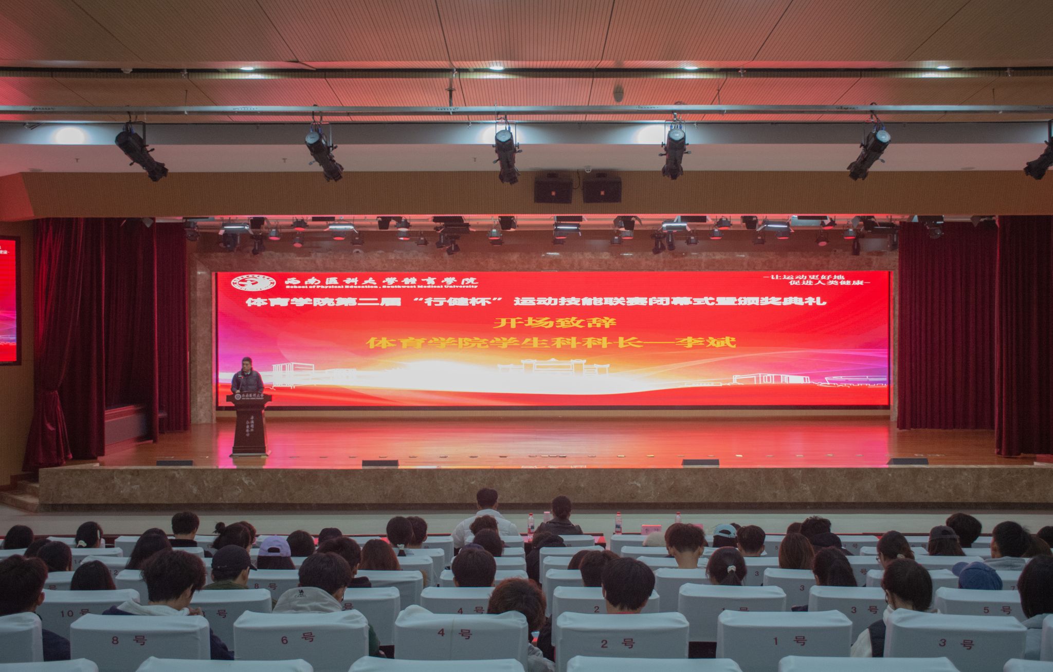 2025年11月14日晚,体育学院第二届“行健杯”运动技能联赛闭幕式在第一学术报告厅隆重举行。体育学院党委副书记黄莉、学生科科长李斌、分团委书记刘泸、辅导员杨星月及2023级、2024级、2025级参赛学生参加了闭幕式。