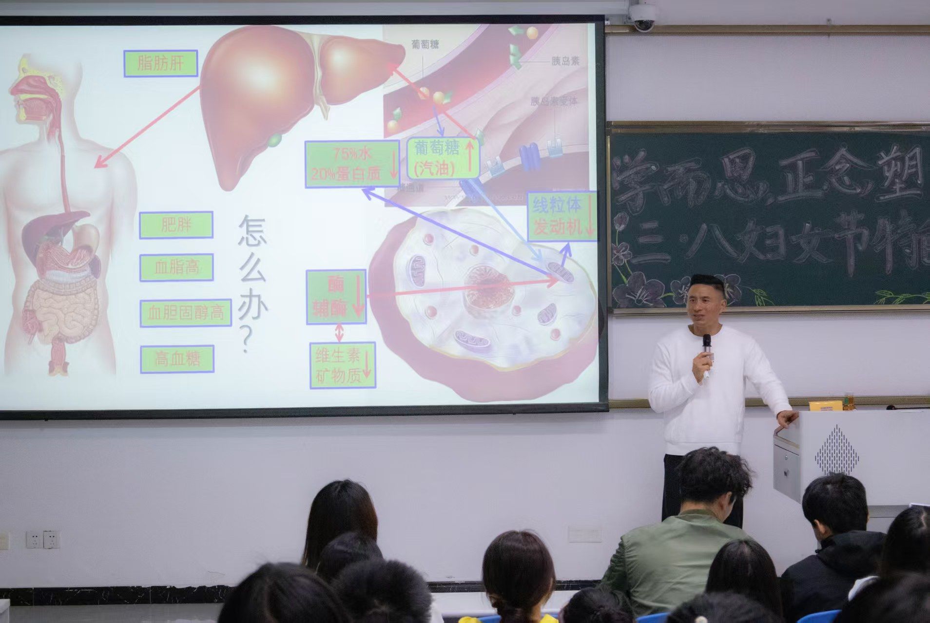 为深入推进2026年“锋光有你,暖满校园”雷锋月志愿服务活动,近日,体育学院分团委在学海楼举办“学而思,正念塑健康”科普志愿讲座,以专业力量践行雷锋精神。活动由分团委书记刘泸主持,基础医学院王特为副教授主讲,吸引全校140名青年志愿者及师生代表参加。
