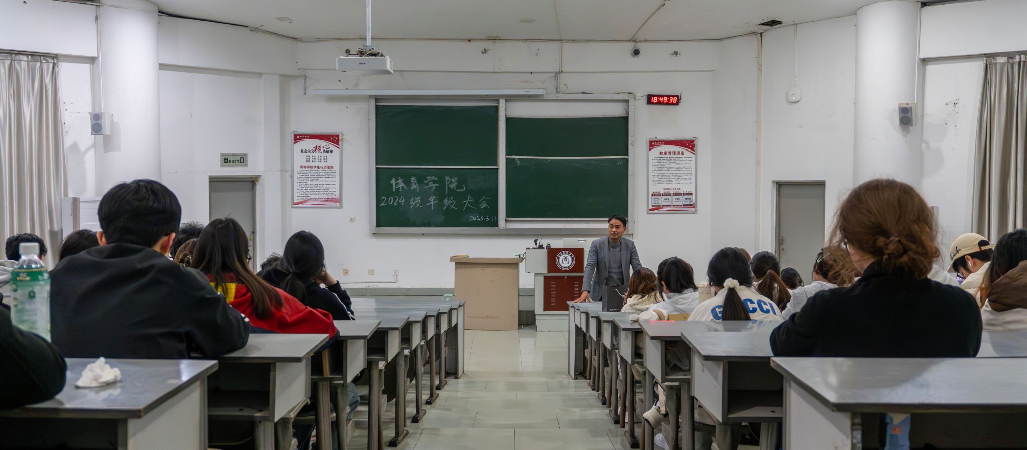 为引导学生快速调整状态,明确新学期奋斗目标,强化纪律意识与安全观念,3月11日晚,体育学院在鸿文楼101教室召开新学期2024级年级大会。辅导员刘泸主持会议,运动康复、社会体育指导与管理专业250余名学生参加会议,共同开启新学期征程。