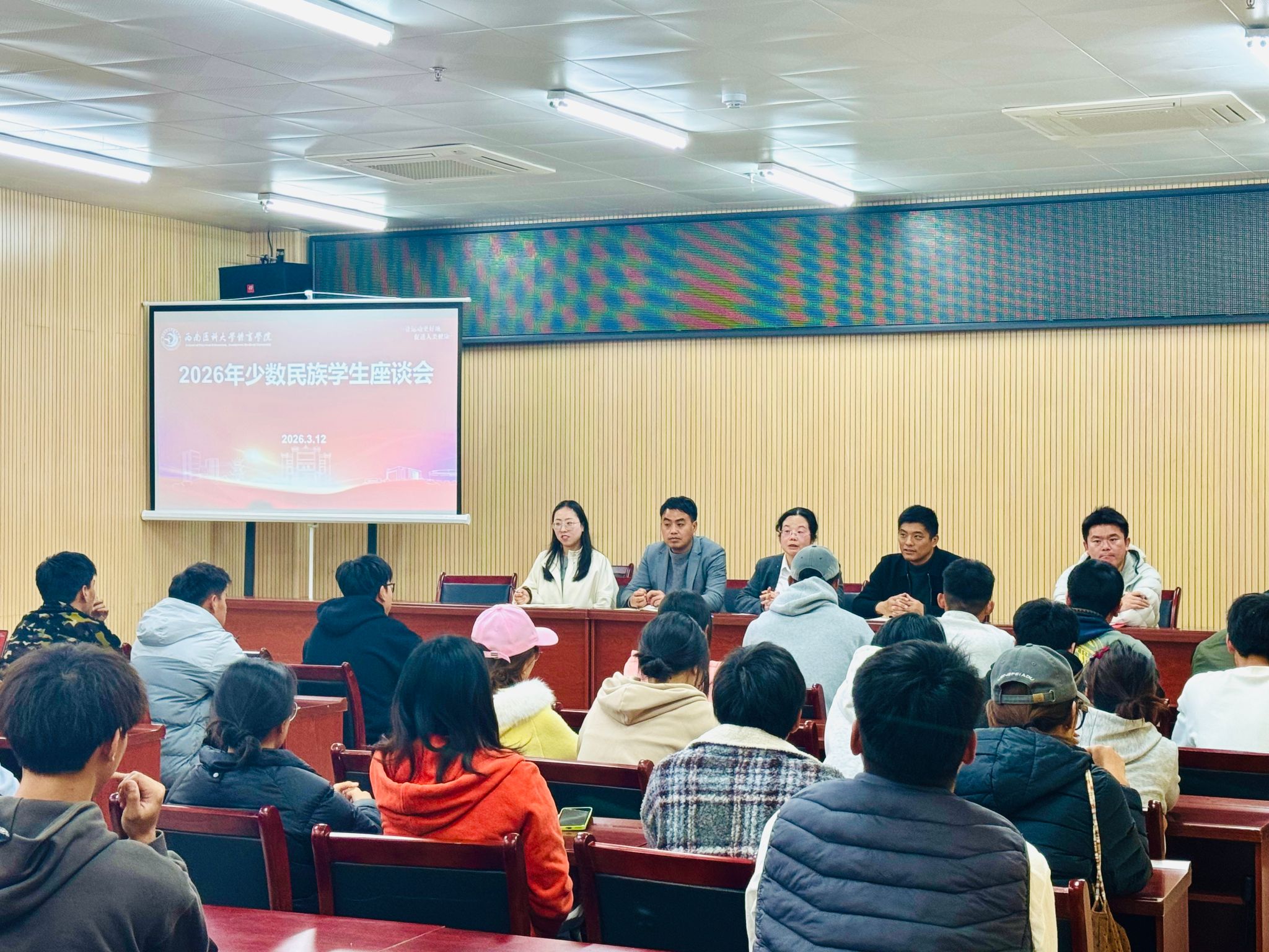 3月12日,体育学院召开2026年少数民族学生座谈会。学院党委副书记、纪委书记黄莉,学生科科长李斌、分团委书记刘泸,辅导员杨星月、李浩,各年级少数民族学生参加会议,会议由李斌主持。